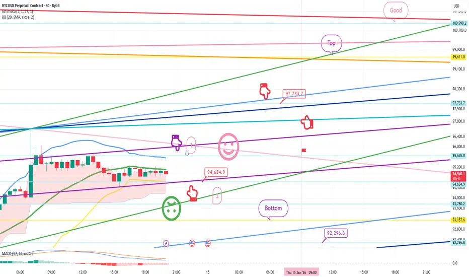 2. Long position: $97,733.7 (first target) -> Target prices are set at Top, then Good, in that order.