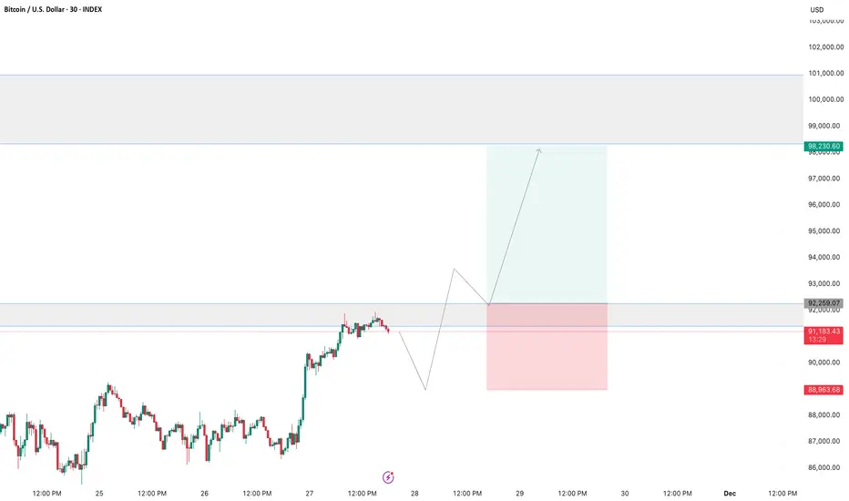 Waiting for price to tap the retest/demand zone around $91,300 – $92,200