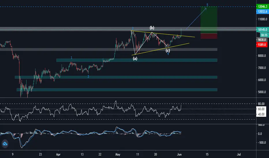 I flip my previous short position into long at $9800 and targeting the $12000 as well before this month ends