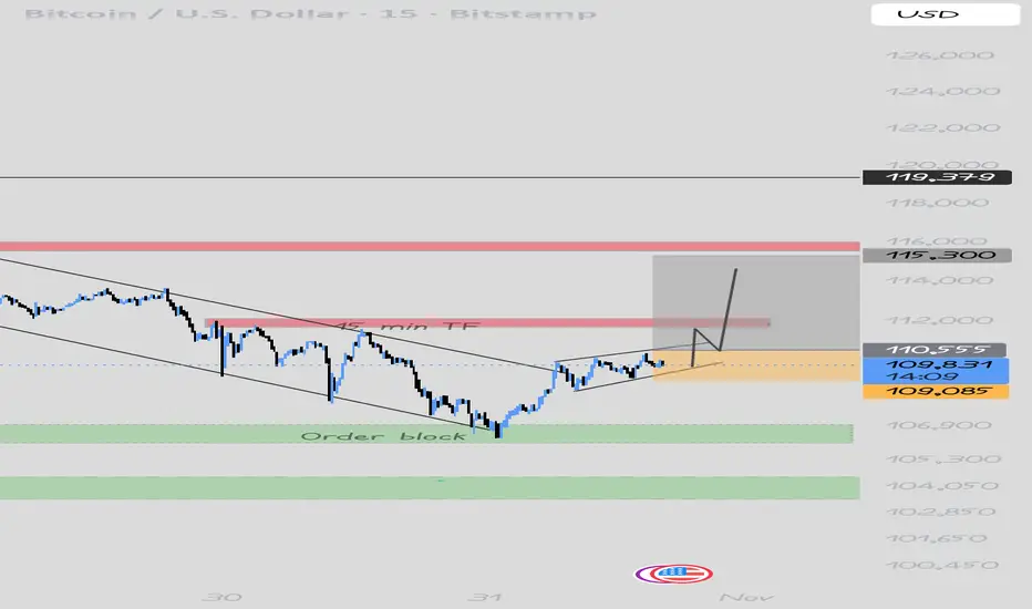 Btc consolidated in 15 min TF around 110000 to 109000 and break this zone my target is 115000 previous resistance i look for