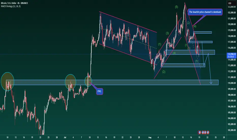 Based on Dow Theory, the ongoing decline could extend towards the 113,000 area before the market sees a stronger rebound. A descending channel has now formed, and price is reacting well to the upper trendlines, reflecting that short-side pressure remains dominant.