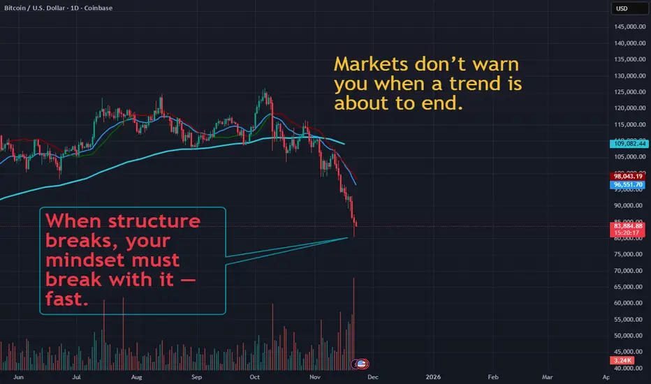 Structure shifted from higher highs → lower highs, and now a violent lower low.
