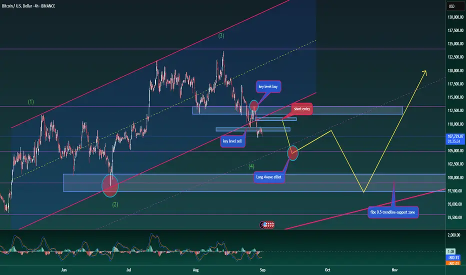 BTC continues to follow the expected path. On the chart, price has held steady after breaking down from the rising channel, and the medium-term bearish structure on the H4 timeframe remains in play.