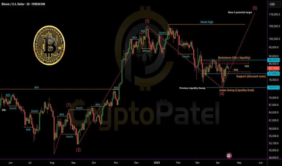 🔹 Entry Zone: Retest near 82K (FVG + OB)