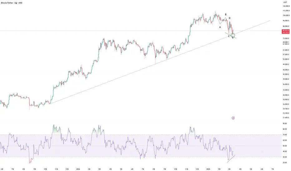 날봉 상승 다이버전스 + 상승추세에서 반등 한 것울 보면 최소 9만까지는 반등 할것으로 예상