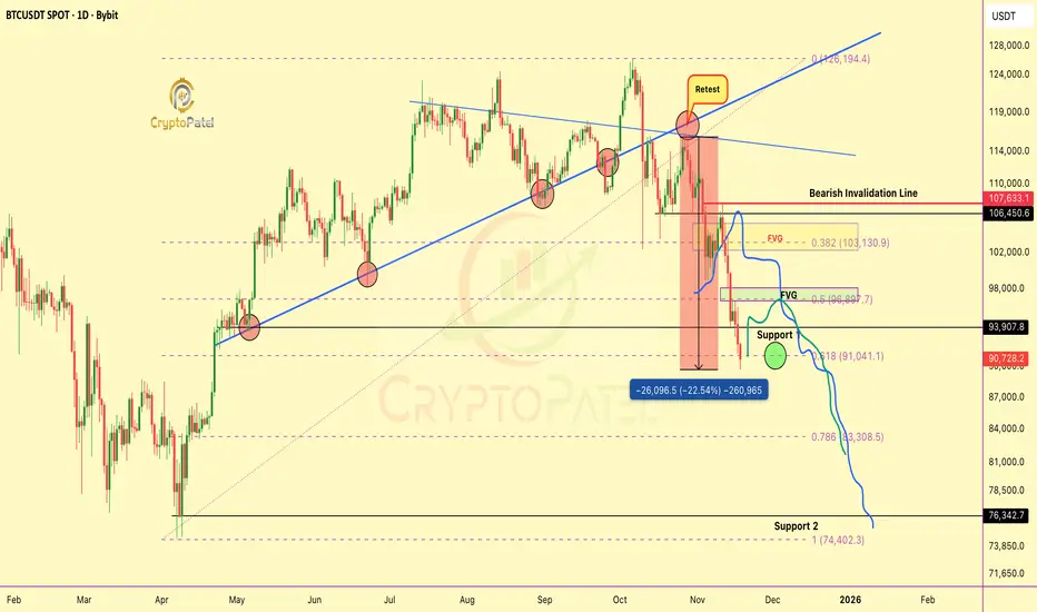 BTC has now broken below the $90K zone, a level not seen since 22 April 2025, Seven months ago.