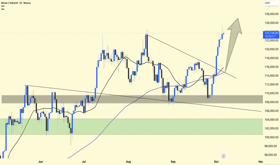The current move shows healthy strength with volume support, indicating strong buyer interest. If momentum persists, the next potential target is around the $125,000-$128,000 area, where some profit-taking could occur.