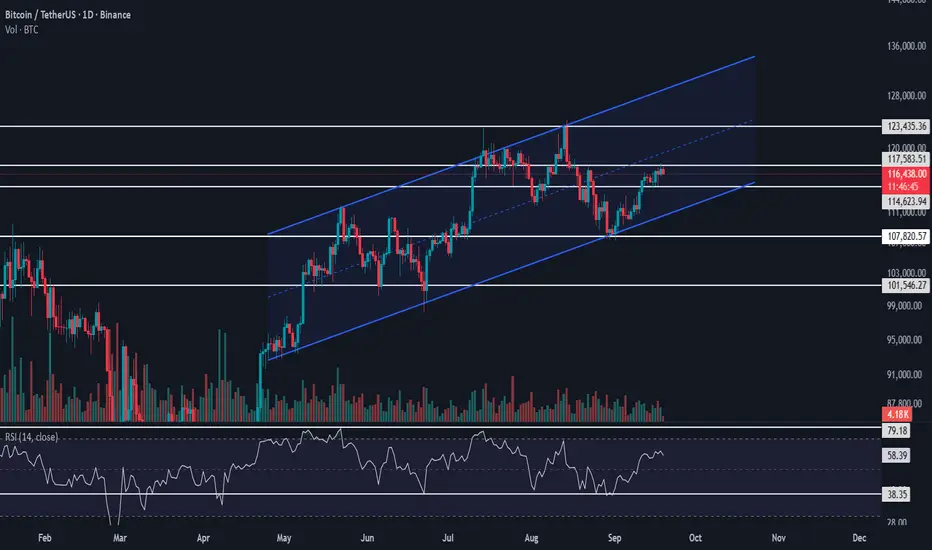 The key trigger level to watch is 117,583.51. A confirmed breakout above this resistance would provide a strong long entry signal, opening the path for continuation towards higher resistances and potentially activating broader bullish momentum.