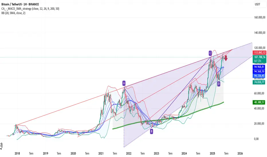 2023 yılının başından 18000USD fiyatı ile yolculuğuna başlayan BTC 1 yıl gibi süre zarfında 73000USD seviyelerini soluksuz test etmiştir. 73000 bandından yapılan düzeltme ile 50000USD seviyelerine kadar geri çekilmiş ve devamında 2024 yıl sonunu 108000USD seviyelerinden kapatmıştır. Genel itibari ile her ne kadar yukarı yönlü hareketler devam etsede sahte sinyaller ve hacimsiz artışlar ile uyumsuzluk sergilemektedir. Bu sebeple 108000 sonrası 77000USD seviyelerine kadar geri çekilerek an itibari ile 107500USD seviyelerine kadar yükseliş kaydetmiştir. Ancak genel tabloya bakıldığında trend ve fiyatın yönü her ne kadar haftalık bazda pozitif olarak görünse de haftalık olarak güçlü bir trend olduğu kesinlikle söylenemez nitekim aylık olarak trend her ne kadar 45 seviyelerinde güçlü bir trend izlenimi gerçekleşmiş ancak teknik olarak dev bir üçgen formasyonun aylık bazda sonuna gelmiş bulunuyoruz. Önümüzdeki günlerde 110000USD-112700USD-115666USD sıralı hedefleri gerçeklebilir ancak sert bir satış dalgasının ve düzeltmenin geleceğinin kaçınılmaz olduğu ve tekrar sıralı olarak 101000-97450-93270SUD Seviyelerini orta vadede test edeceği kanaatindeyim.