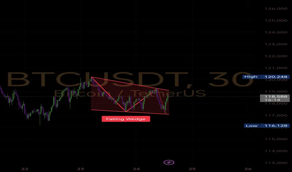 A classic Falling Wedge pattern just broke out on the 30mins timeframe, signaling a potential short-term bullish reversal for #Bitcoin.