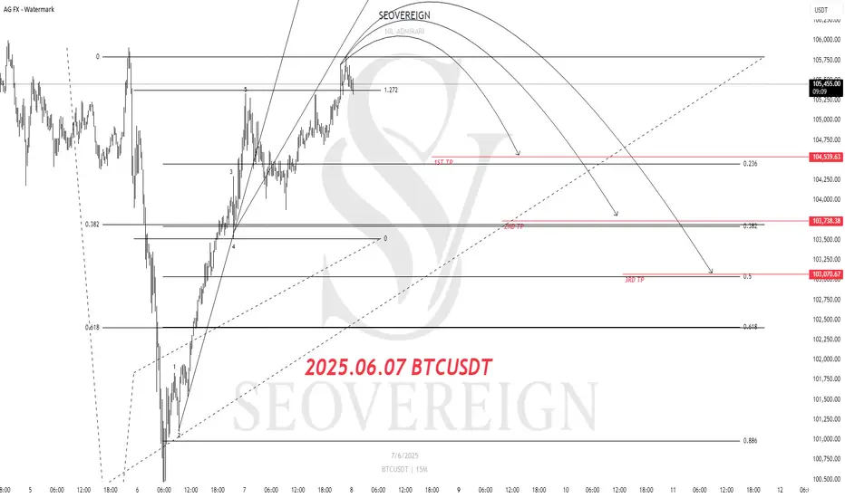 The initial target is set at 104,500, which coincides with the retracement zone of the previous decline and the prior support level.