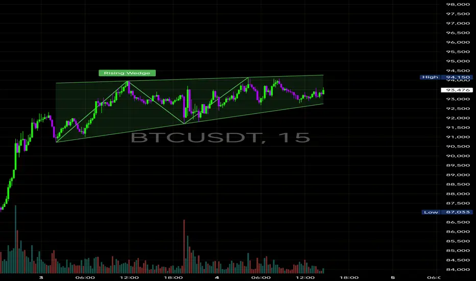#BITCOIN is moving inside a clear rising wedge, a pattern that typically signals buyer exhaustion on lower timeframes.