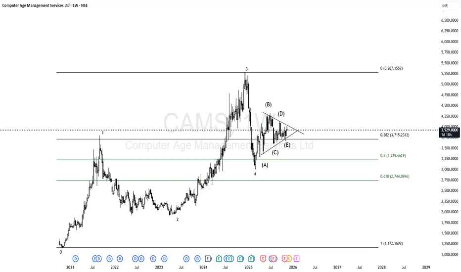 CAMS is about to give an impulse move towards the upside as it is currently consolidating in the 4th wave. Keep this in the watchlist and look for break above the resistance trendline. And as always, don't enter without a SL :)