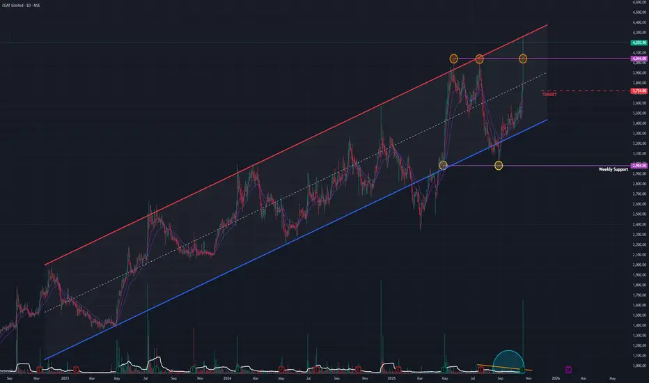 - Bearish Reversal Scenario: If history repeats itself and the channel resistance holds, the stock will likely be rejected from this level. A failure to stay above the recent horizontal breakout would be the first sign of weakness, potentially leading to a reversal back down to the channel's median, around the ₹3,725 level.