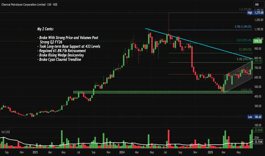 ChennaiPetro: Wedge & Trendline BO with 61.8%, Chart of the Week