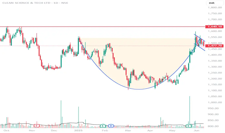 Accumulation patterns zone trying to be broken. In addition, the flag & pole pattern, once broken, will give an upward move till 1640, being the 1st target.