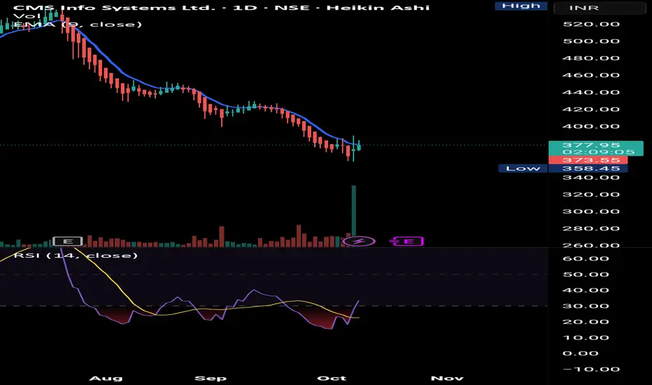 CMS currently available at supply zone and yesterday delivery volume showing strong support at this price. Investors can plan to buy this good stock at support level.