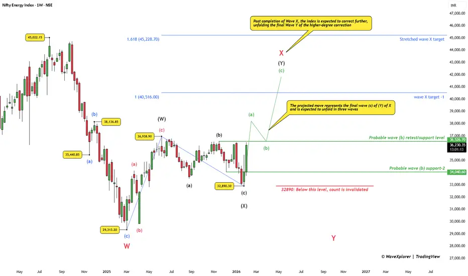 The Nifty Energy Index continues to trade within a higher-degree corrective structure rather than a fresh impulsive uptrend.