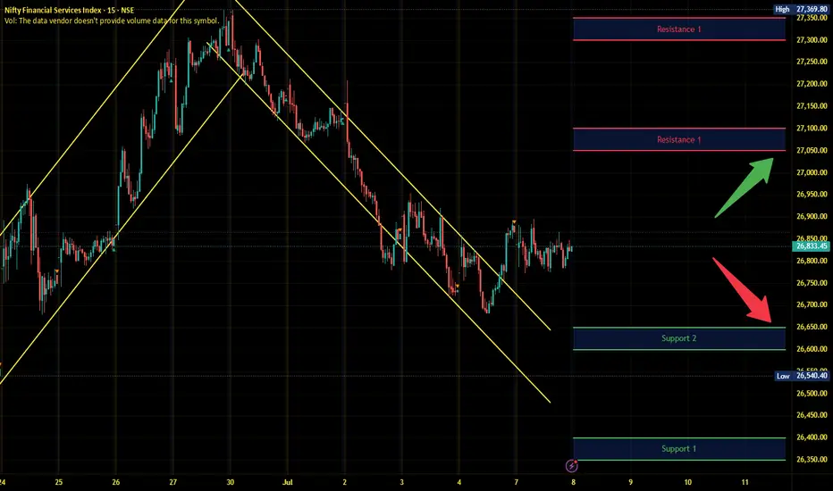 Finnifty has immediate support near 26650 – 26600 range and if this support is broken then index may tank near 26400 – 26350 range.