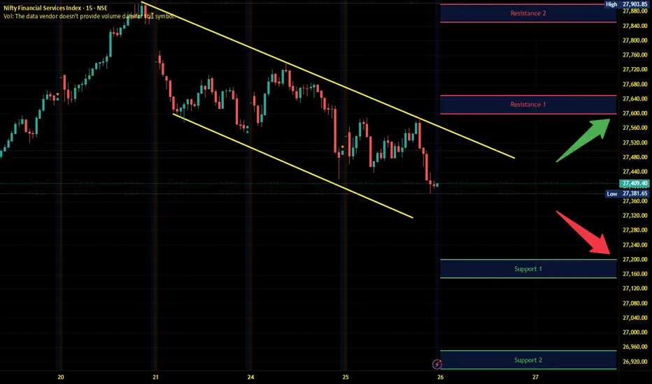 Finnifty has immediate support near 27200 – 27150 range and if this support is broken then index may tank near 26950 – 26900 range.