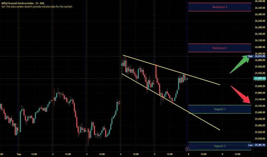 Finnifty has immediate support near 25725 – 25675 range and if this support is broken then index may tank near 25500 – 25450 range.