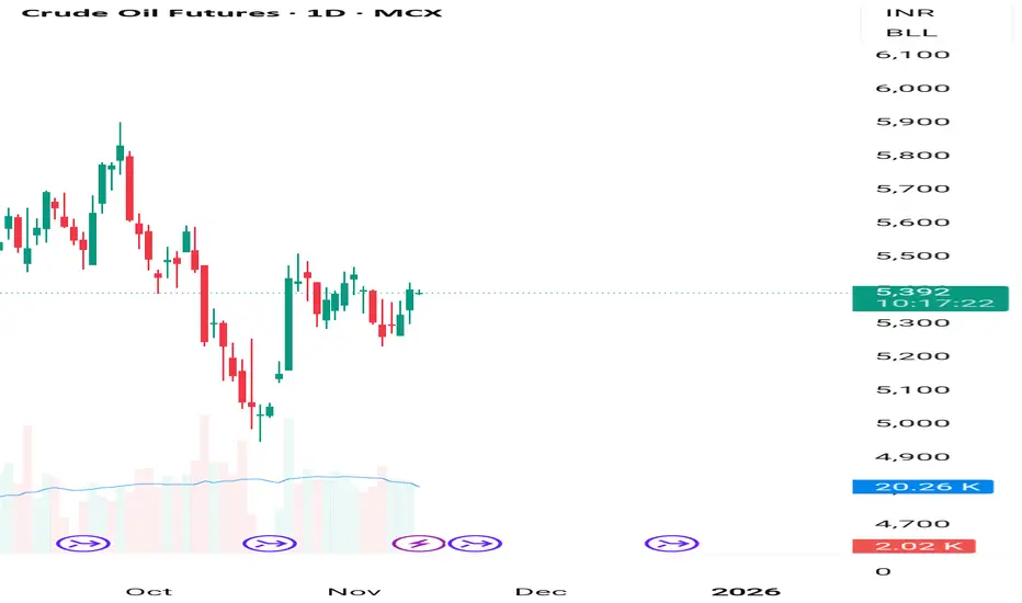 - Price Action: Crude is holding firm above ₹5,350, showing renewed bullish momentum.