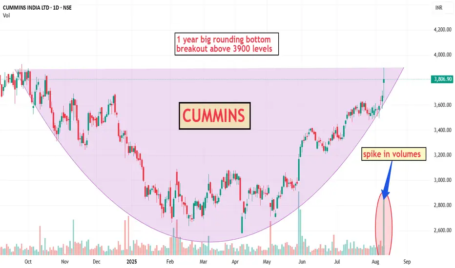 Cummins ready to breakout above 3900 levels , 1 year big rounding bottom it is making