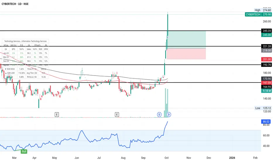 Cybertecth target done at 245 level. Trade is taken on the basis of HNI entry in stock