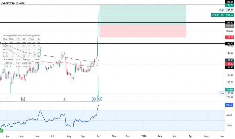 Buy cybertech at 218 level and hold till 245 level with SL of 201.