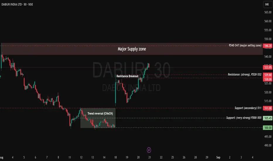 Break & hold above ₹532 = opens upside to ₹540 → ₹547.