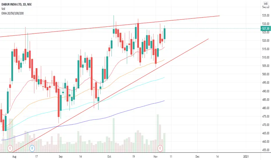 With good volume growth reported QoQ in Q2 results, Dabur can be a considerate stock for next week before Diwali. Any upmove or closing above 531-532 would set target upto 540-550 + with SL 516.