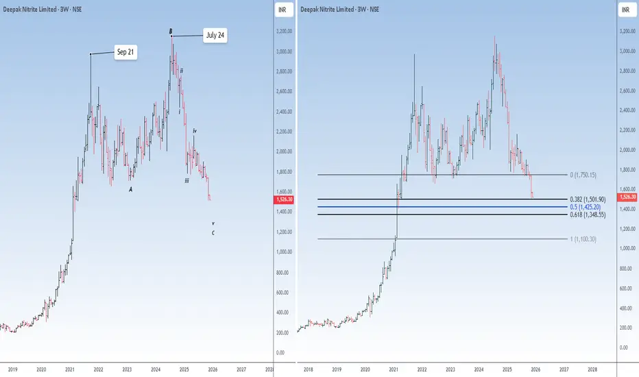 > Elliott - This stock made highs in Sep 21 and since then has been in a corrective mode. The rally to new highs in July 24 is also part of the correction. The C wave is in its v th and last wave of correction.
