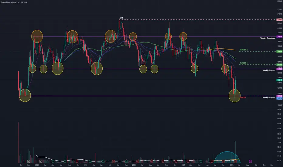 Devyani Int (W): Aggressive Bullish, Turnaround at Major Support