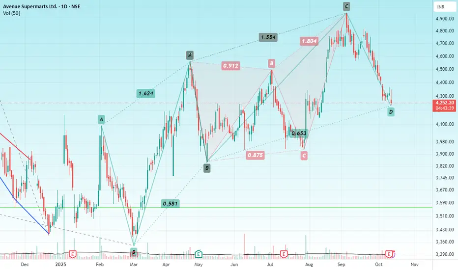 DMART has usually reversed regularly from Harmonic Patterns as can be seen in this chart in daily time from a