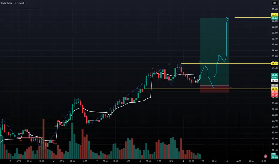if go with dollar as seen in chart it is taking support from its bullish order block of the structure and liquidity sweep is pending if it takes liquidity and sweep the early buyers it has potential to hit the target with in 24 hours .