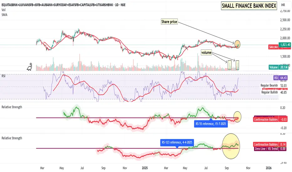 There is something going on these small finance banking index as it has clearly outperformed for some time but due to aggressive in nature and bad loan portfolio share price of this sector companies get under pressure but as in this Q2 coming some shares are showing strength as they are available at discount So it is my small contribution of technical Analysis of this sector relative to bank nifty