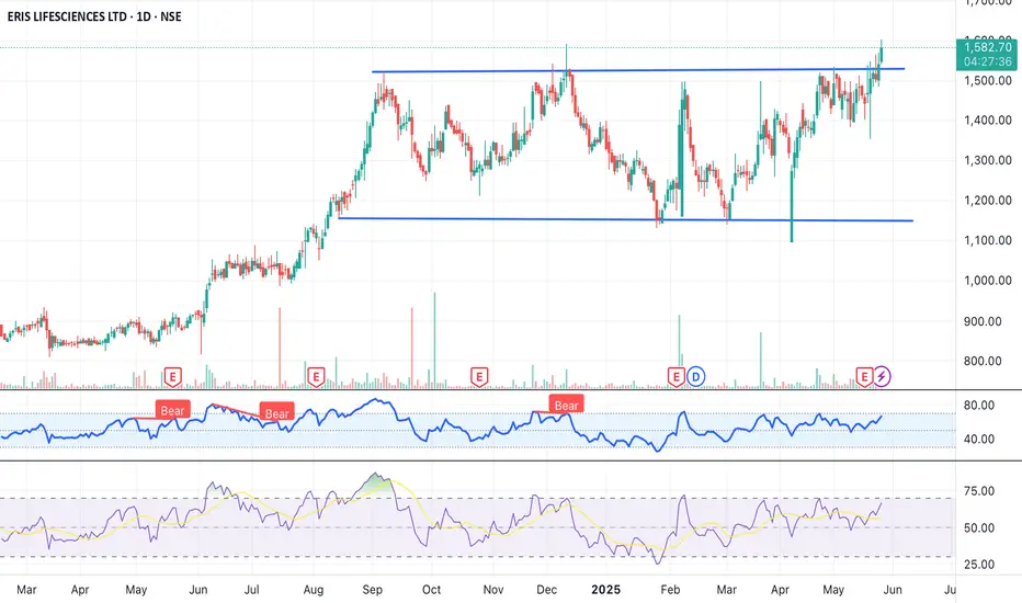 ERIS LIFESCIENCE broken out in 10 months rectangular pattern and poised for quick momentum if sustain above 1560