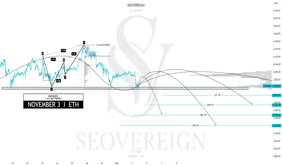 Currently, Ethereum is approaching the completion zone of the 1.414 Harmonic Butterfly pattern that I personally designed.
