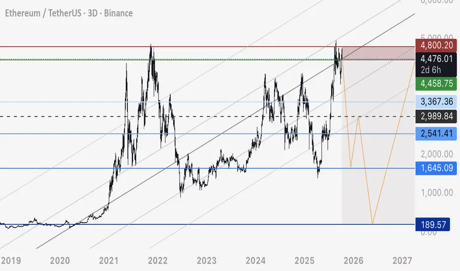 ETH may create a 3 wave corrective move - and I will be hedging with a long position from 1,600 to 3,000 - timed entry with Bitcoin hitting 35,000