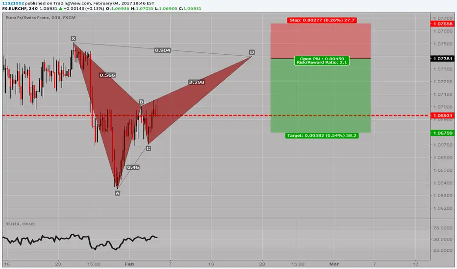 On the EURCHF 4 hour timeframe we have a potential bearish bat pattern forming.