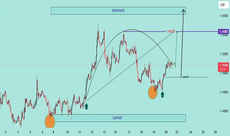 A strong breakdown below support (1.14450) would invalidate this bullish setup.