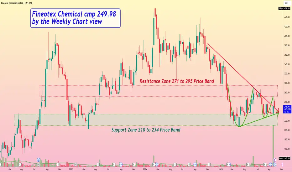 Fineotex Chemical cmp 249.98 by the Weekly Chart view