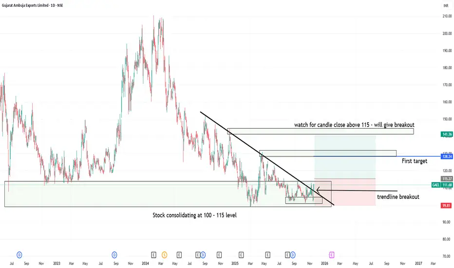 1. Gujrat ambuja export lt- showing consolidation at 100 to 115 levels