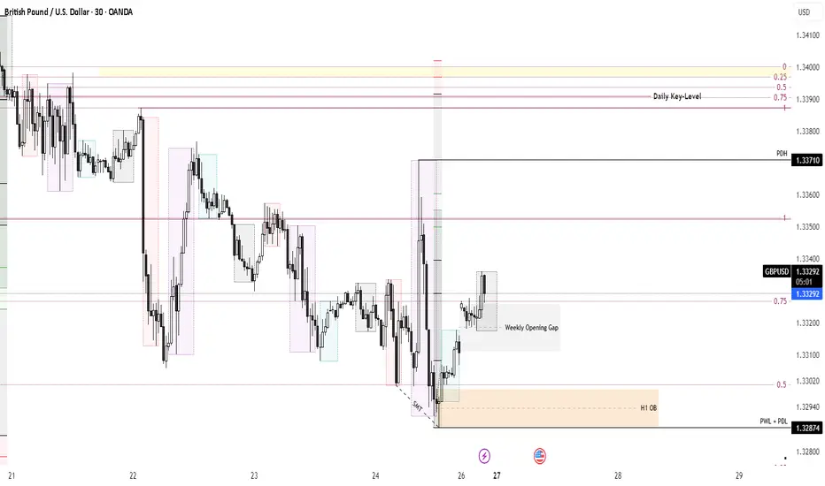 GBPUSD is retracing in higher timeframe towards an important Key level before giving the seasonal November expansion. It also is the resetting phase of the October's monthly candle as we are in the las week of October. We are anticipating a Classic expansion till Wednesday and we may purge the sell side liquidity by Wednesday. However, the retracement at the Key level today (Monday) and a bearish order-flow there onwards will confirm this narrative.