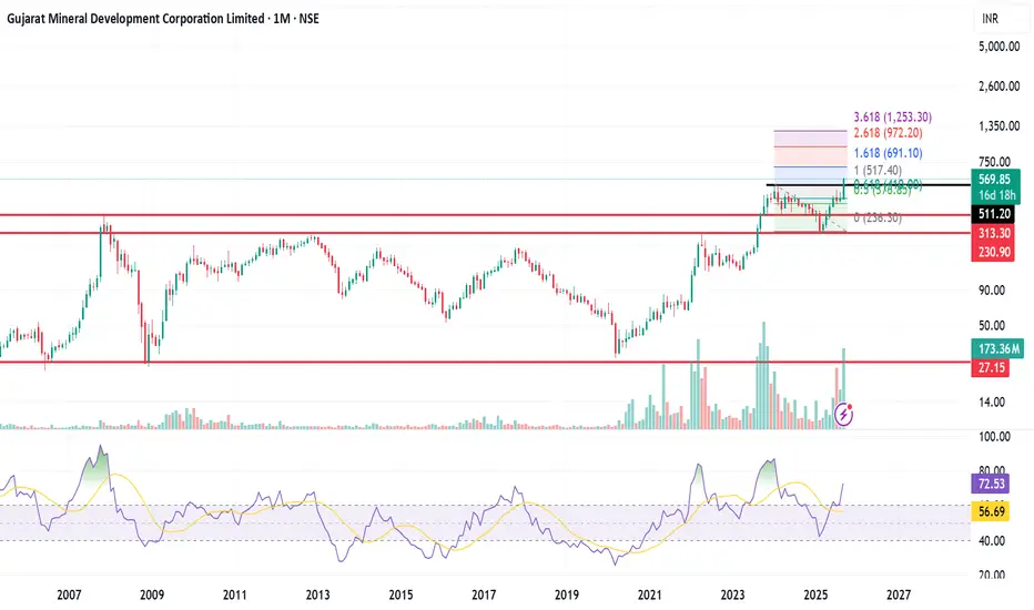 The stock is trading above 60 RSI on D+W+M which shows movement in the stock. The stock has given breakout of 2007, after almost 18 years and consolidated for one and half year. The stock has given breakout with a bullish candle i.e marubozu candle or king candle.