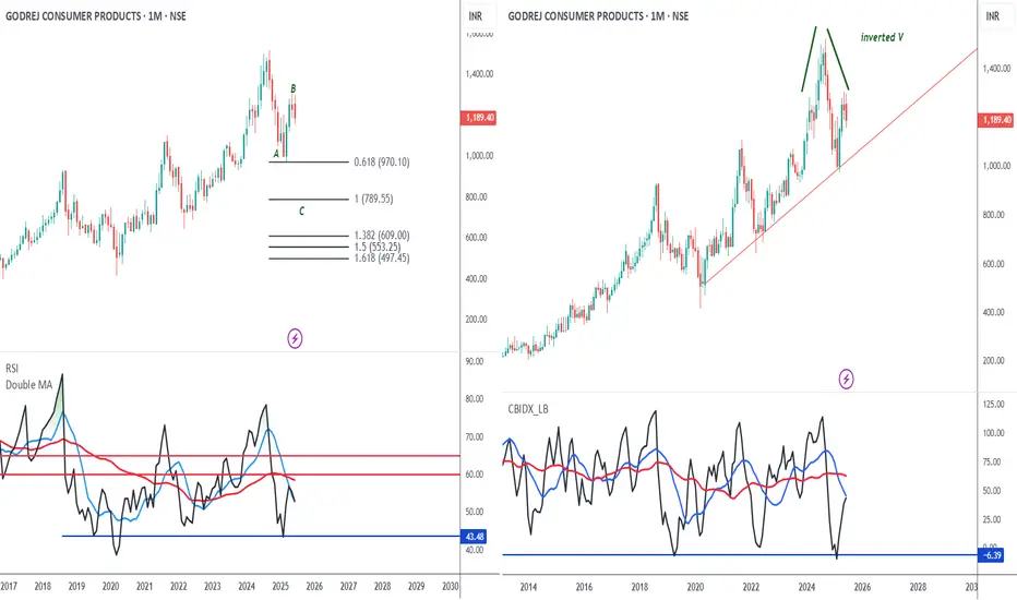 Elliott - This is a zig zag corrective pattern. The B wave rally is over and now the C wave has started. The A and C have a 1 and 1.618 relationship. Hence this correction will not get over before 790 and max 500.
