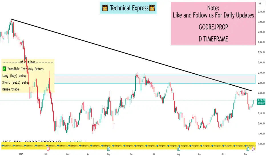 Short (sell) setup: If price drops and closes below support (~ โน 2,187) and shows weakness โ enter short with stop just above pivot (~ โน 2,210) โ target maybe ~ โน 2,150-2,160.