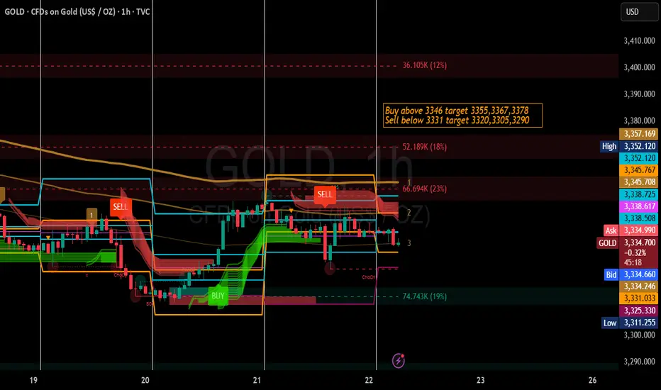 ๐ SELL: below the low of a 15-min candle that closes below $3,331
