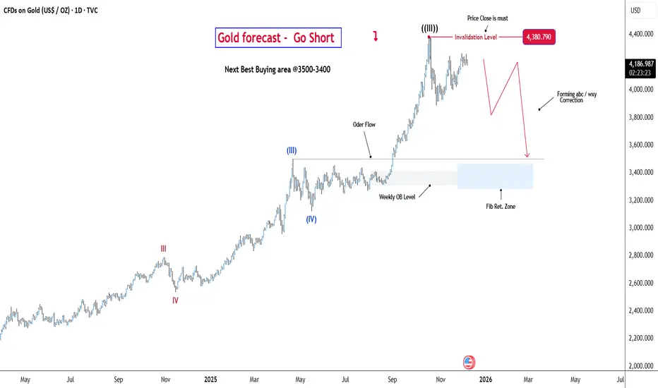 Gold Price now super cycle wave 3 completed and wave 4 correction is going... this correction forming ABC flat or WXY correction so wait for fresh buy @ 3500 to 3400 USD or short @ 3350-3450 level