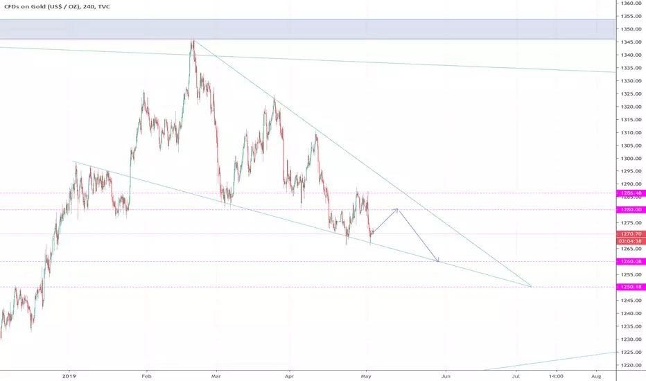We reached the first point I called - 1280, where I got out of a buy and now I am selling hard. Keep your eyes on the S&P, Dollar index and the China trade deal... Good luck.Disclaimer